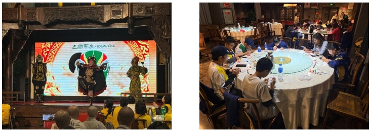 The cultural immersion was further enriched through hands-on activities such as opera mask painting, where students learned about the symbolism behind Sichuan Opera masks. The day culminated in a live Sichuan face-changing performance during dinner, leaving students in awe of this unique art form and deepening their appreciation of Chinese performing arts.